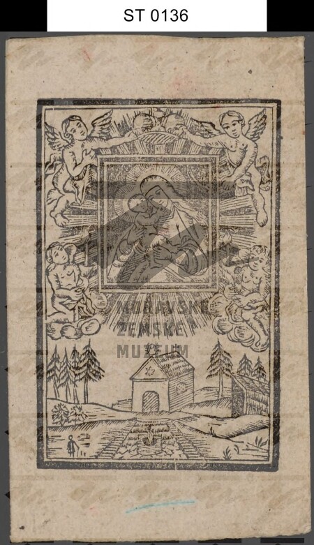 Výzdoba: str. 1 Panna Marie Pomocná obrázek v rámečku (výrazná černá dvojlinka)